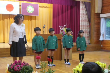 「年中組さんの一年間、毎日元気に登園することができました。年少組さんの時よりお休みが少なかったと思います。みんなを支えてくれているお父さん、お母さんや家族にも「ありがとう」と伝えてくださいね。立派な年長ひまわり組さんになることを楽しみにしています。」