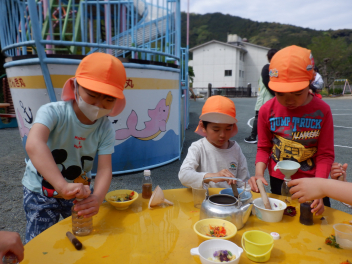 ひまわり組さんから「すごい!」「おいしそう!」という声が聞かれ、たんぽぽ組さんはとても嬉しそうでした