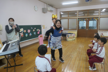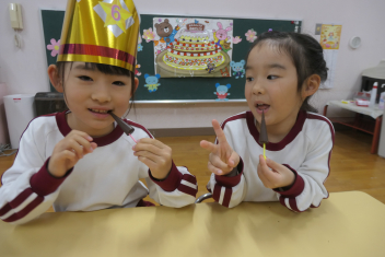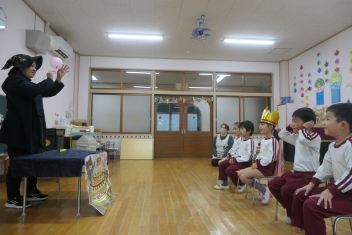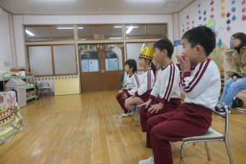 初めての年中組も静かに頑張ってできていました。年長組は「上手だよ」と褒めていただきました