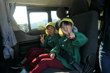 バスの時間まで余裕があったため、大きなイチョウの木の下で落ち葉を拾って楽しみました