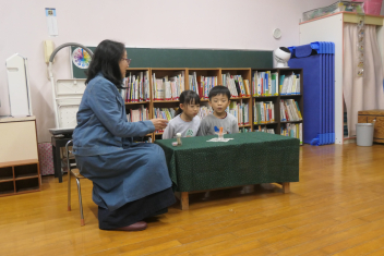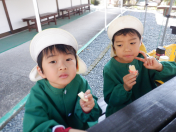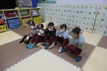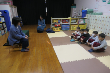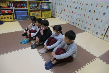 初めての年中組も静かに頑張ってできていました。年長組は「上手だよ」と褒めていただきました