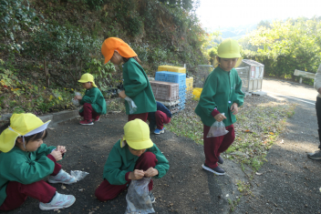 黄色や黄緑など素敵な色になっている葉を見て、「きれいだね~」と喜ぶ姿が見られました
