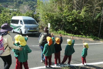 2学期に入ってから、園外保育の機会が多く、歩く経験を積んだため、短時間で到着することができました