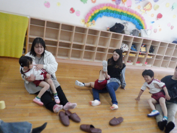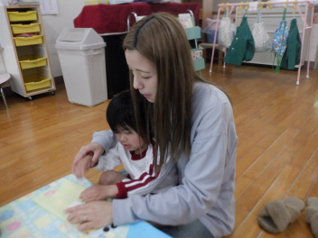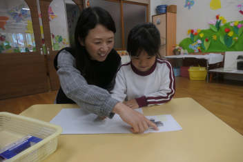 年少さんは緊張ですが、年長さんが優しく誘ってくれるので、表情がほぐれてきました。