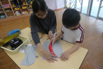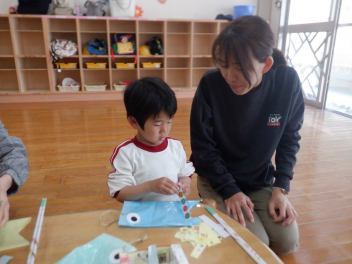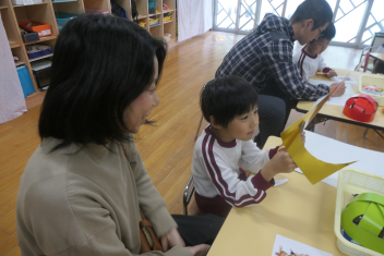 お家の人に見守られながら、真剣なまなざしでつくります。