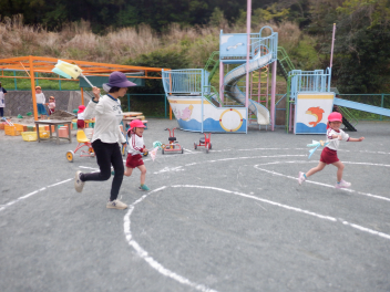 次は、ジャンケン列車です。先生も一緒に入って遊びました