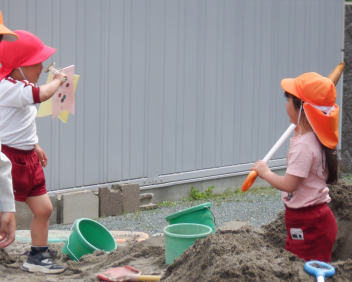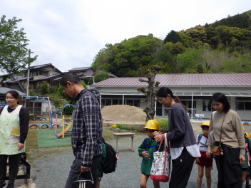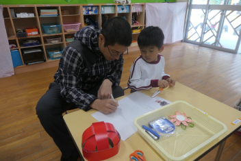緊張した表情でしたが、年中児が一緒に行ったことで少し緊張がほぐれたようでしたlaugh