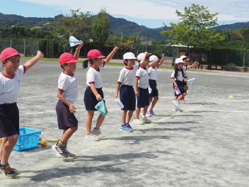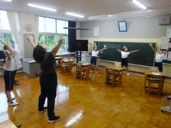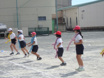 「チェッコリ」の音楽に合わせて行います。尾奈っ子はみんなノリノリです