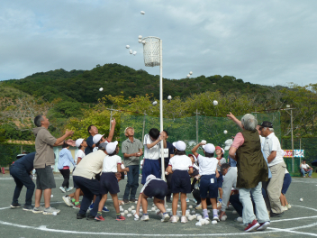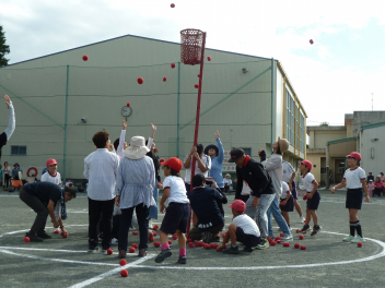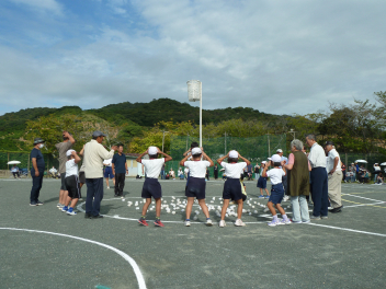 低学年の部は、子供たちと地域の方やおじいちゃん、おばあちゃんと一緒に行います。