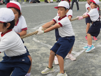次は、力と力のぶつかり合い「赤白対抗綱引き」です。