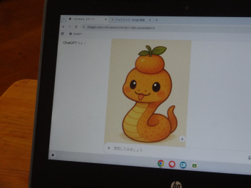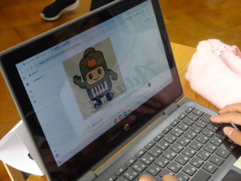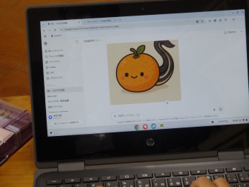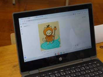 さらに尾奈小学校のキャラクター作りに挑戦します。今度はモデルはありません。尾奈小のイメージを入力して…
