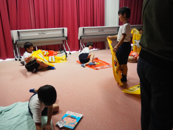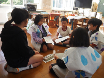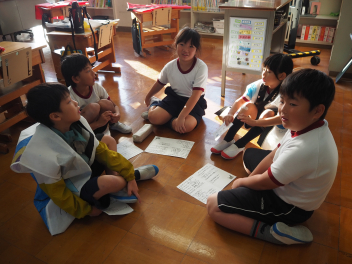 1~3年・4~6年生に分かれ、縦割り班のメンバーで行いますblush