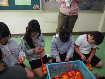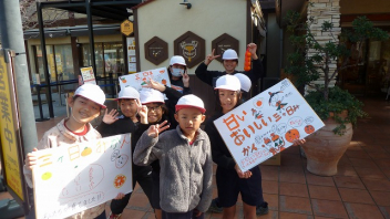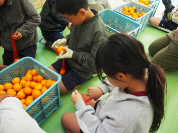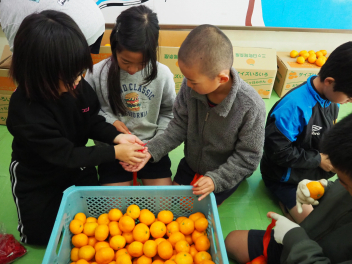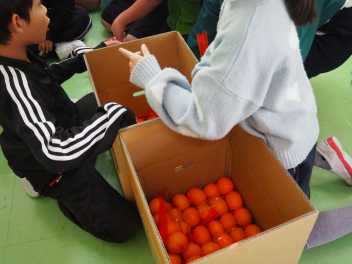 • 12月2日(火)に3・4年生が長坂養蜂場でみかんを配りました。