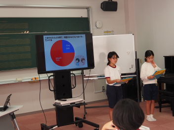 じりつ委員会から、事前に行った「こころのアンケート」の報告を聞きます。