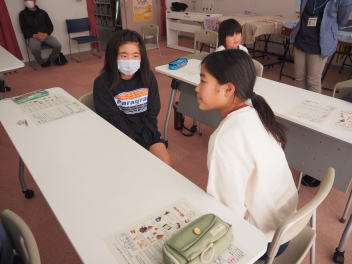 2人1組になって、相手の気持ちも考えて意見を伝える練習もしました。