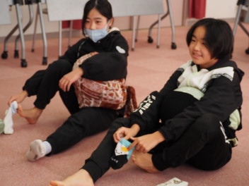 体操座りをしたり、靴下を脱いだり履いたり。