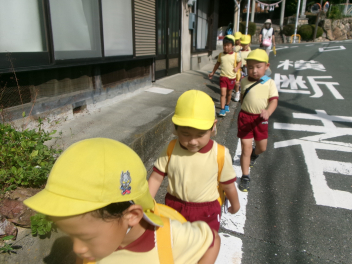 今日、年少さん、年中さんはお散歩に行きましたsmiley