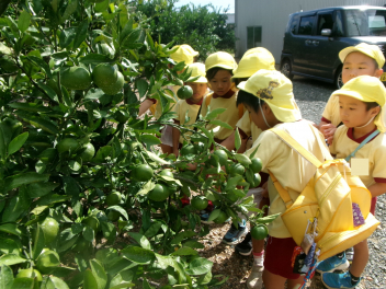 帰りには、ミカンの様子を見たり、どんぐりを探したりしましたsmiley