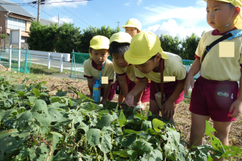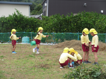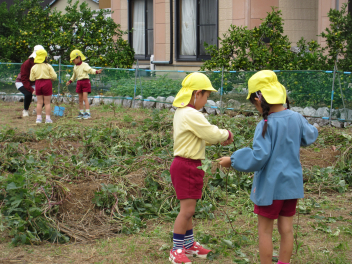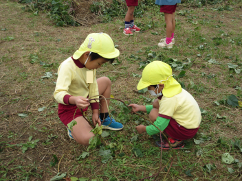 サツマイモが大きくなっている様子を観察したり、ツルの長さを確かめたりしました。