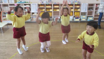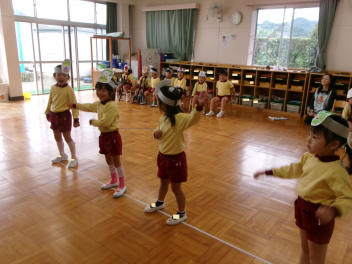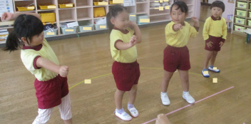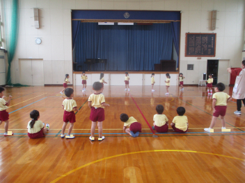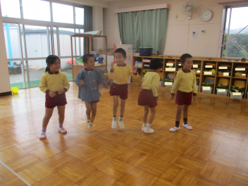 ダンスをしたり、「だるまさんが転んだ」をしたりしました。体育館の広さを感じながら楽しみましたsmiley