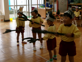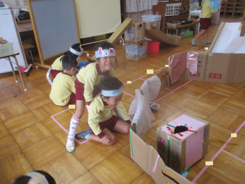 年長さんは、劇遊びをしました。劇の内容についても、みんなで話し合いました