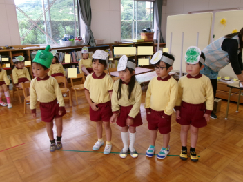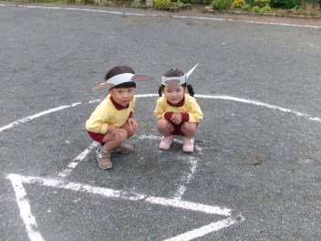 年中さんは、ねこや忍者に変身しました。どんぐり転がしも楽しみましたsmiley