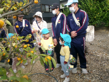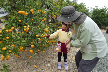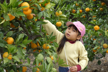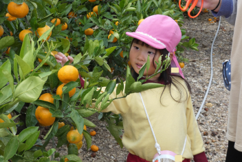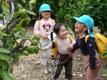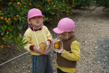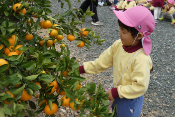 今日は年中さんがミカンの収穫に行ってきました。「どれにしようかな?」とみんな慎重にミカンを選んでいました