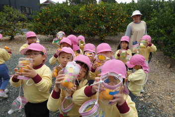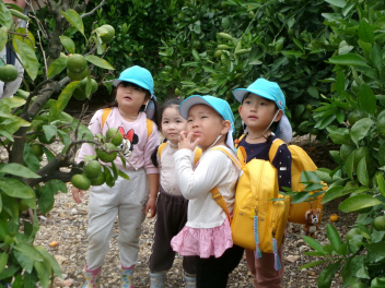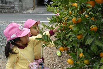 さて、幼稚園周辺では、みかんが色づき始め、収穫の時期を迎えています。