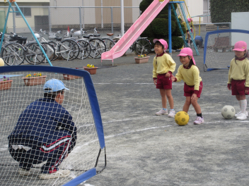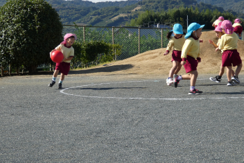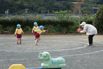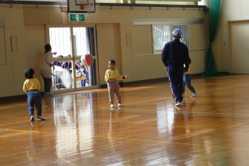 年中さんは転がしドッヂボール、年長さんはジャンケン鬼ごっこも楽しみました