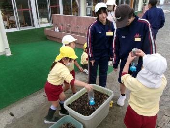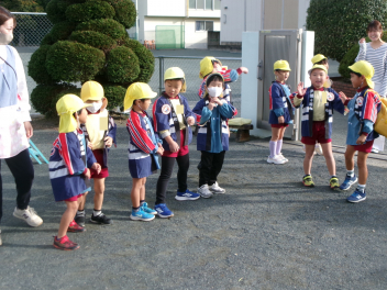 今日は、「ひとりひとりにいい声掛けデー」でした。年長さんは朝、「あいさつ運動」を行いましたsmiley