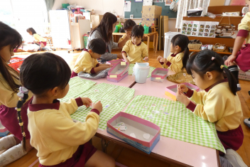 お店屋さんごっこ、塗り絵、粘土遊び、ブロック遊びなどを楽しみましたsmiley