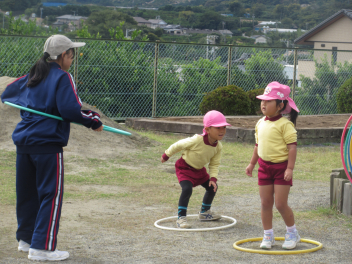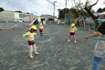 園庭では、転がしドッジボール、フラフープ、バランスウォーカーなどで楽しみました