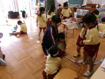 年少さんは、リトミックスカーフを使って楽しく遊びましたsmiley