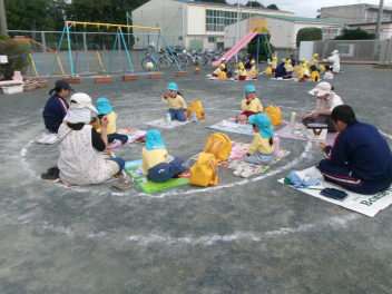 秋季浜松市火災予防運動に合わせて、幼年消防クラブに任命されている年長さんは、法被を着て登園しました