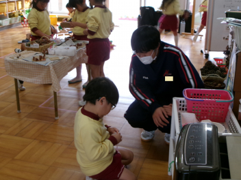 みかん切りを手伝ってくれたり、一緒に遊んだりしてくれました