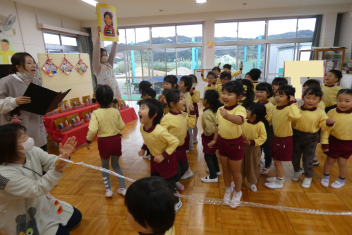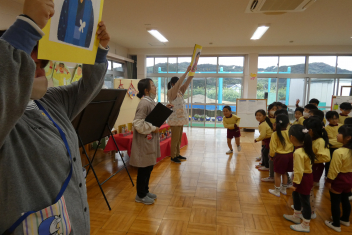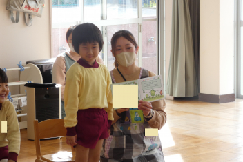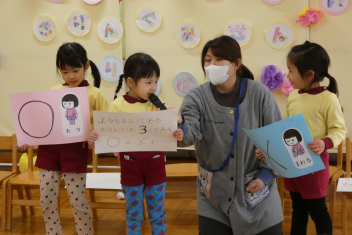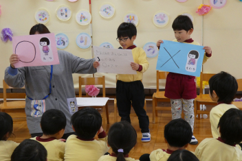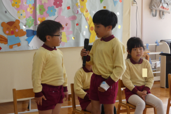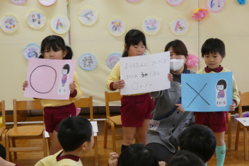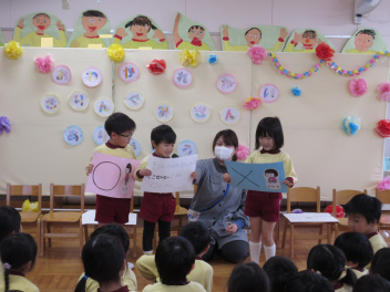 年中さんは幼稚園クイズを出題しましたみんなで楽しみました