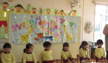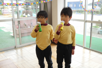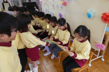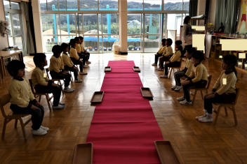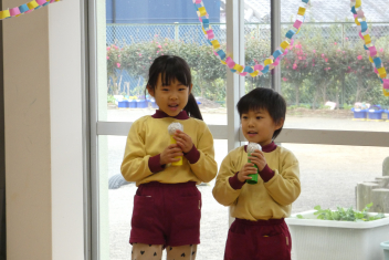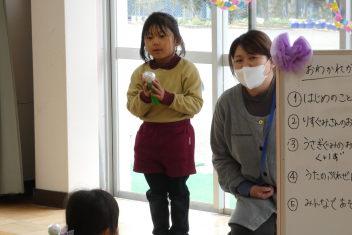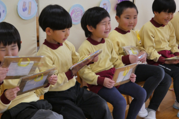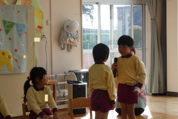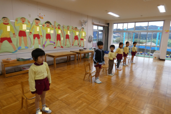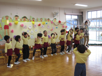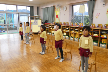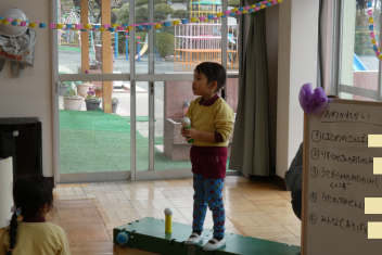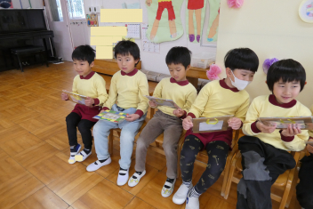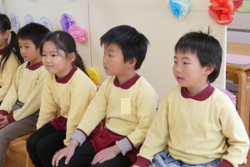 年長さんは、卒園式に向けて、言葉や歌の練習を頑張っていました