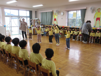 年少さんダンスを披露しましたsmiley年長さんも一緒に踊ってくれました
