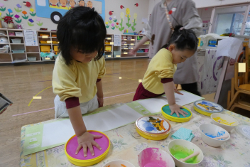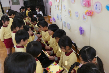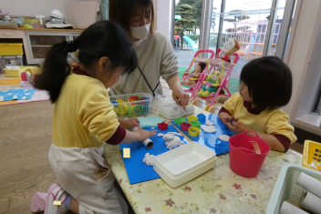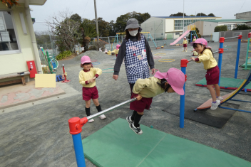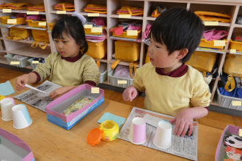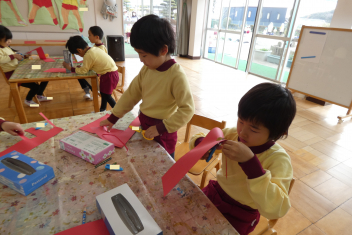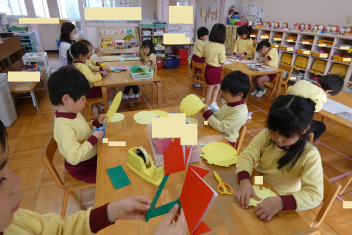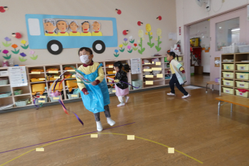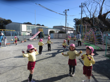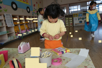 年少さんはお雛様作りを、年中さんは縄跳びを楽しんでいました