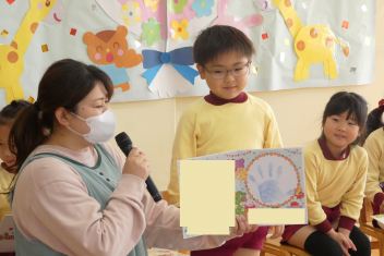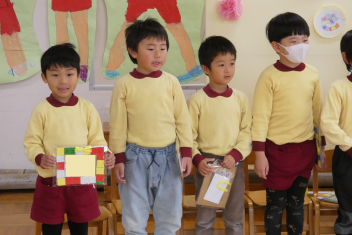 そして、年少さん年中さんが心を込めて作ったフォトスタンドをプレゼントしました