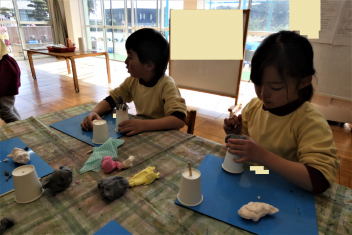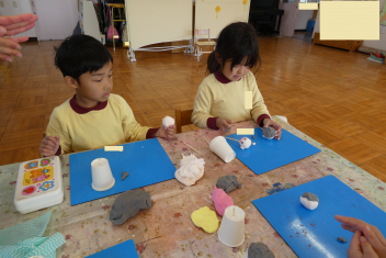 年長さんは、紙粘土でお雛様を製作しました。すばらしい集中力でした