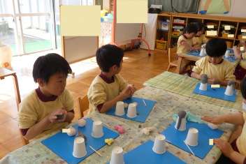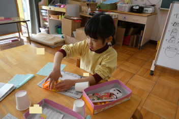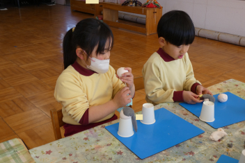 年中さんは、お雛様作りをしていました。