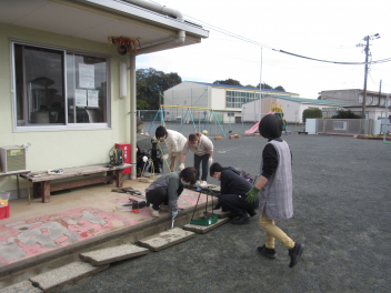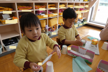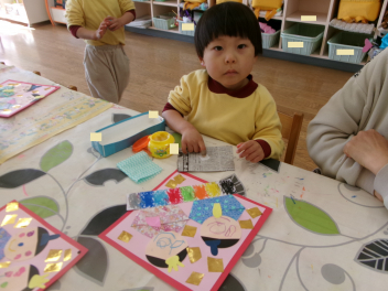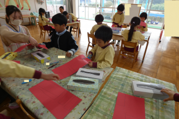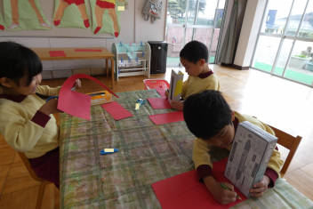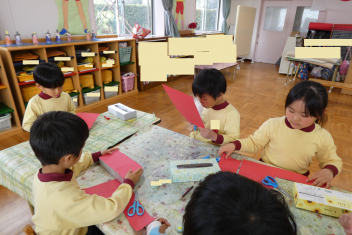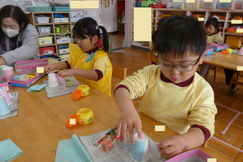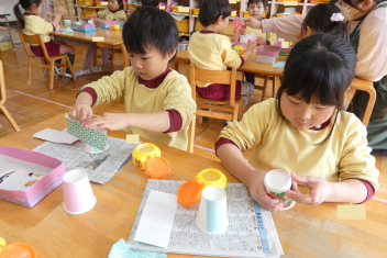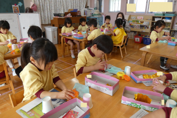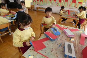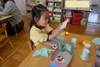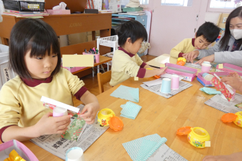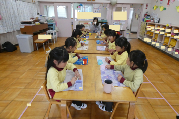 年少さんは、修了記念品製作に取り組みました。