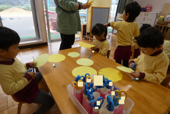 年中さんは、たんぽぽを製作していましたsmiley