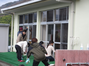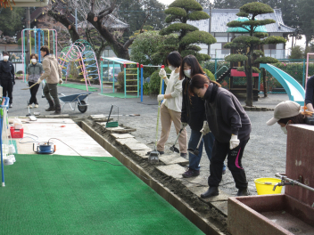 今日は、保護者ボランティアの皆様が、側溝や窓ガラスの掃除をしてくれました