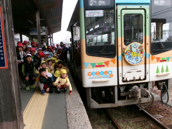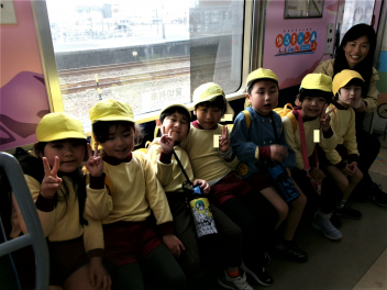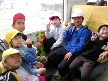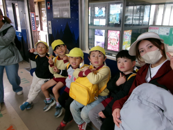 年長さんは、尾奈小学校70周年記念遠足に誘ってもらい、記念列車に乗ってのんほいパークに行きましたsmiley