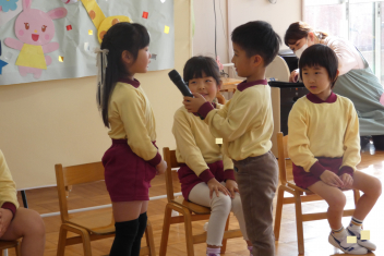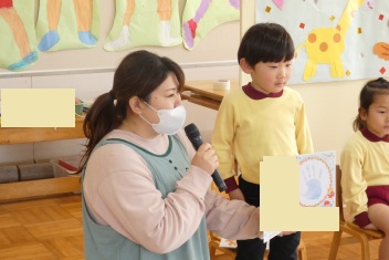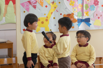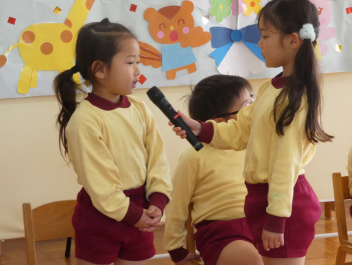 司会の年長さんは、誕生日のお友達にすきな動物をインタビューしました