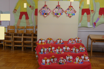 部屋には、子供たちが作ったおひな様を飾りましたsmiley