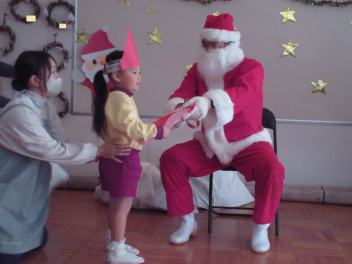 サンタさんに質問したあと、サンタさんから一人一人にブーツを渡してもらいましたsmiley