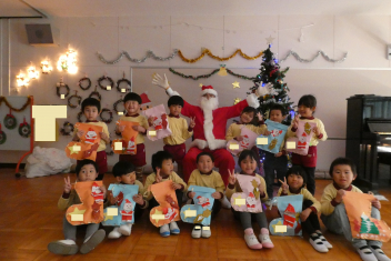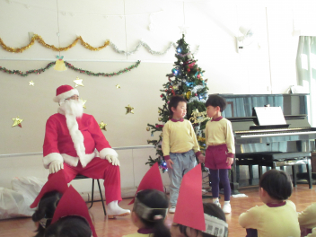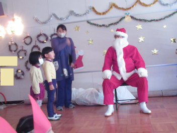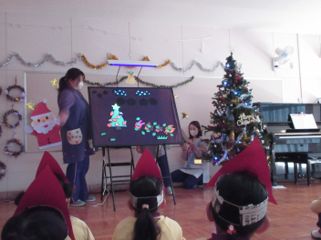 クリスマス会では、ブラックシアターを行い、サンタさんが登場しました